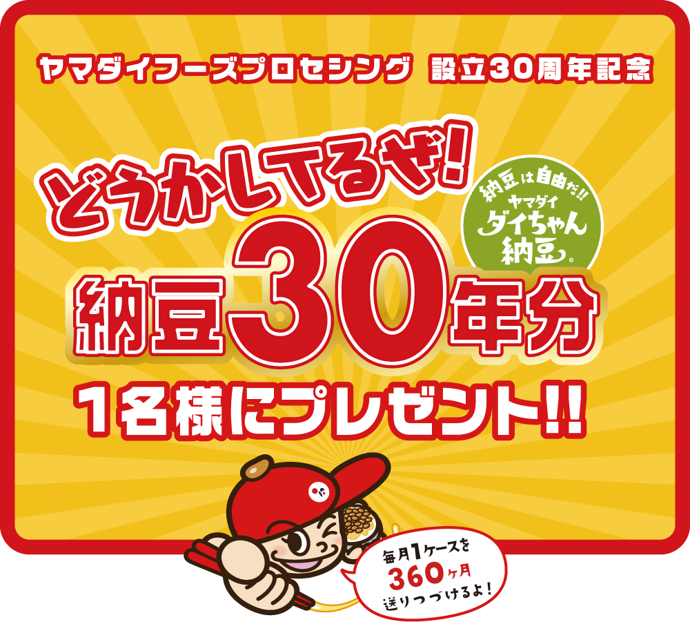 そこでいつも当社の納豆を食べてくれる人たちへの恩返しに納豆1年分を30名様にプレゼントしようと思うんだ!