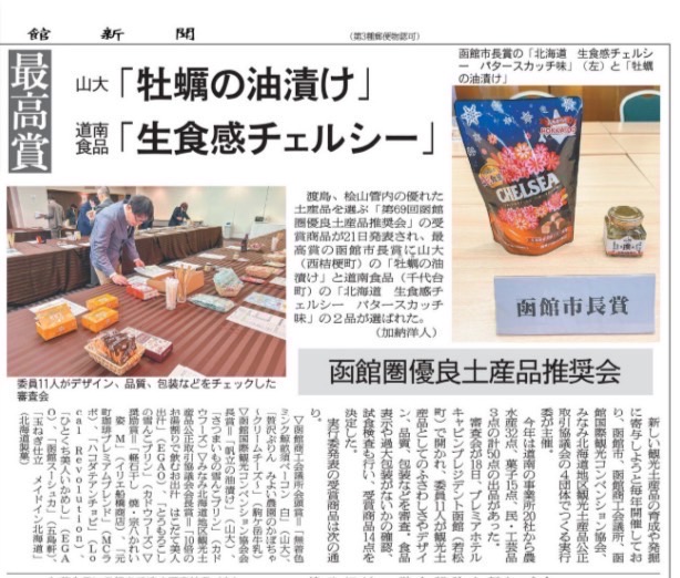 函館新聞2025年3月21日山大「牡蠣の油漬け」函館市長賞を受賞