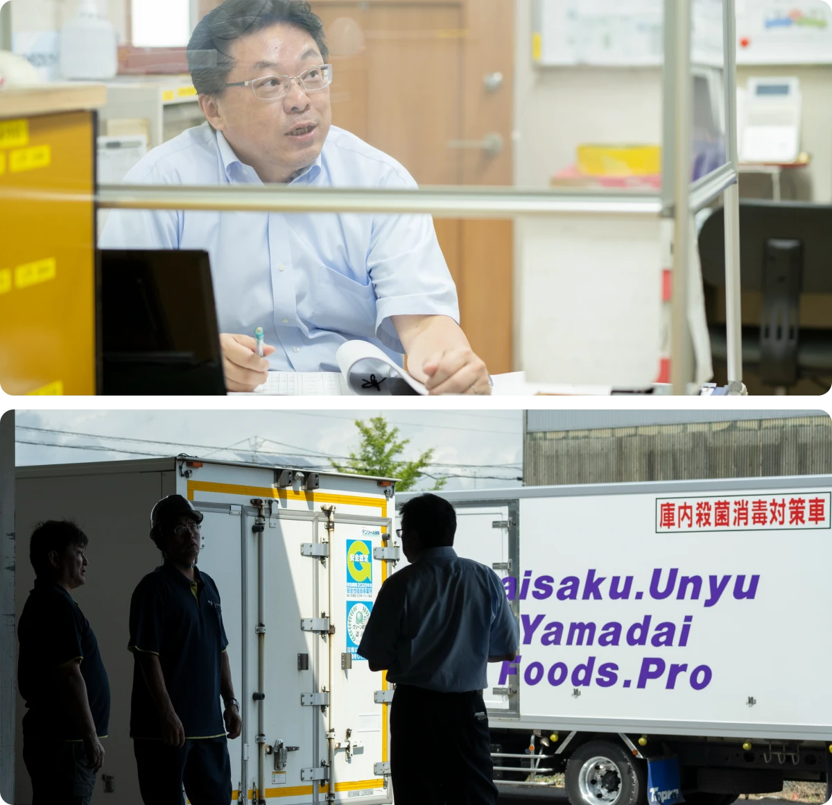 - 百貨店での販売員、貴重品運搬警備会社での勤務、建設運輸会社で統括運行管理者を務めた後、2017年にヤマダイ大作運輸へ入社。現在は9年目。
